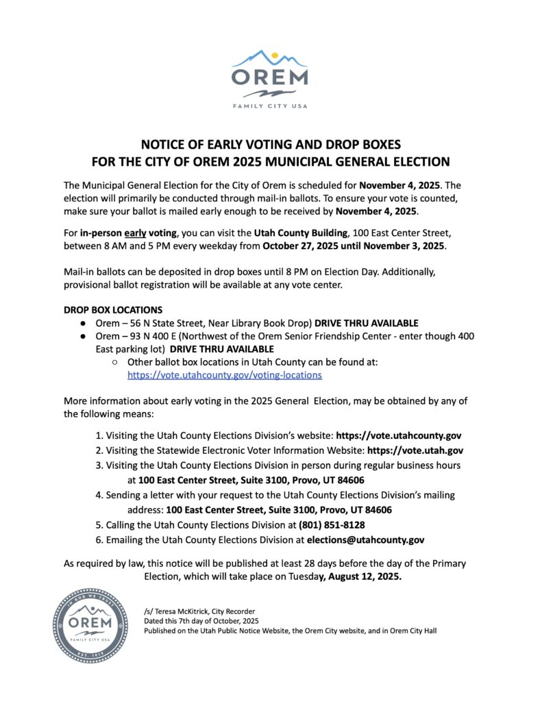 FOR THE CITY OF OREM 2025 MUNICIPAL GENERAL ELECTION
